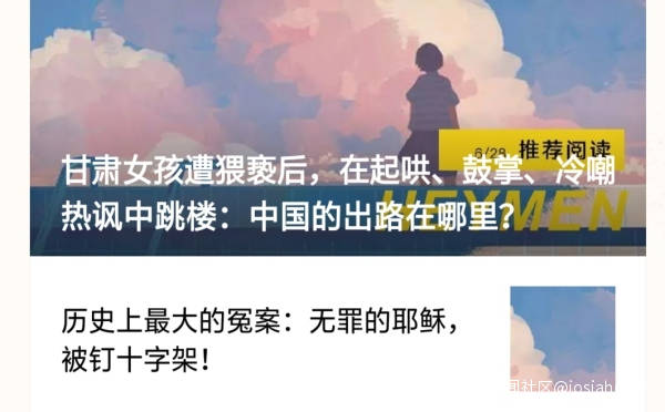 這篇文章已經因為網友噴他夾帶私貨而被刪除。實際上他後來也不止一次夾帶私貨。很最早的小清新風格不一樣。現在的他,不cue社會議題,好像會死一樣。他現在改名叫黑門了。在叫黑門甘露Emmanuel 的時候,雖然還有這樣的問題,但是比較正常一些。當他轉型營銷號,甚至開始僱傭團隊之後,風格就大變。而中東傳教士事件更是言辭激烈地帶節奏。