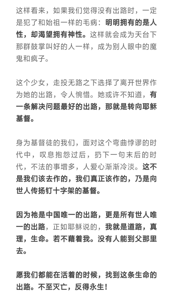 這樣的一個悲劇,卻被黑門用來吃人血饅頭傳教。就差説她應該信耶穌,不然就不會自殺了。我之前就説過,中華田園基督教,擅長用所有的事例來傳教,不管那人活人死人。然而在基督教國家,他們的行為也不是被廣泛接受的。美國有個著名的牧師叫Pat Robertson(帕特羅伯森,中國很多基督徒應該知道他的《答案》節目),他聲稱美國某地發生颶風,是報應,因為那地的人不敬虔。猶太人被屠殺因為他們不信基督。他甚至超級碗都要因為某支球隊所在的州支持同性婚姻,而咒罵他們一定要輸。結果他被美國非基督教徒,以及美國基督教內的很多人士噴成篩子。這個比喻不恰當。但是美國依舊反感類似的行為。中國人反感不是更正常?基督教媒體吃起人血饅頭看上去理所應當。大家可以帶入一下其他宗教,佛教徒,道教徒,ysl教徒發這樣的微信公眾號文章,你們會怎麼覺得?為什麼基督教這樣水花不大呢?只能輻射到基督徒和認識基督徒的人。因為基督教的封閉性比前兩個宗教大,而基督教的爭議性都被第三個宗教掩蓋過去了,很多人只盯着第三個。這就是這些自媒體肆無忌憚的原因。