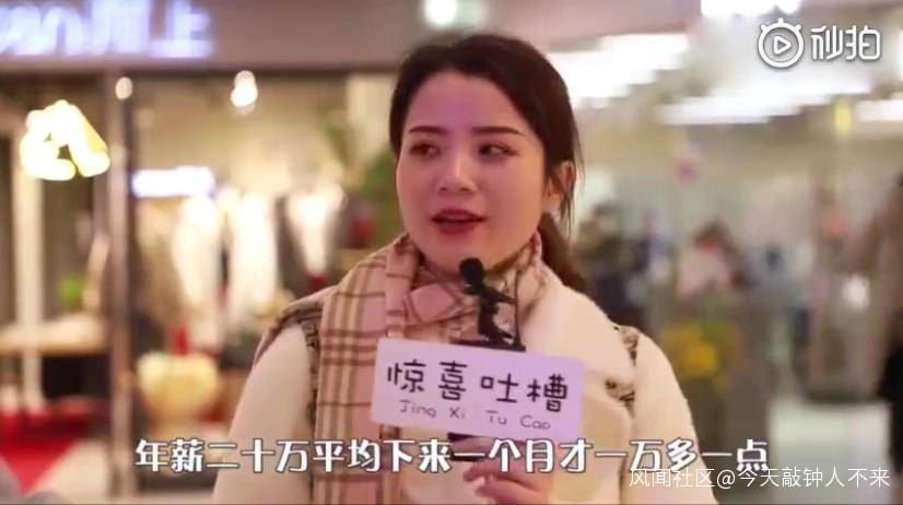 這位女生解釋説,年薪二十萬,平均下來一個月也才一萬多,就是中下水平啊!