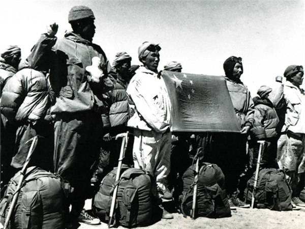 登山隊把一面五星紅旗和一座毛主席半身白色石膏像委託給突擊頂峯的隊員們,要他們克服一切困難,奮勇前進,一定要讓祖國的五星紅旗在世界第一高峯——珠穆朗瑪峯上飄揚。