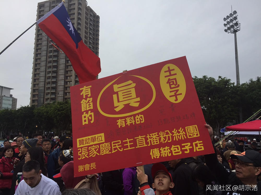 現場還有不少商家贊助贈品,也引發排隊人潮。而上面看到的“土包子”,就要提到最近台灣的一個新聞事件。蔡英文的發言人黃重諺,日前在臉書上暗指高雄市長韓國瑜是土包子,引發一系列輿論爭議。“土”本來是民進黨最標榜的價值 ,就是接地氣,就是愛鄉土,就是和基層站在一起。如今卻公然指責南部的民選市長是土包子,其流露出的傲慢心態和階級意識,恐怕已經引發不小的民怨。最近只要是討論到此話題的政論節目直播時,留言板就不停有觀眾用“我是XX(哪裏的)土包子”、“XX土包子報道”洗版 ,甚至有網友提出“2020土包子大軍滅東廠”。不曉得這把火會不會又燒成去年的“1124滅東廠”。