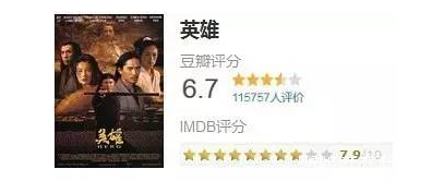 這樣的叛徒開山之作《英雄》,很長一段時期在豆瓣上不到7分,而IMDB則看到了《英雄》神秘的東方文化,和炫目到近乎於玄學的動作場面。