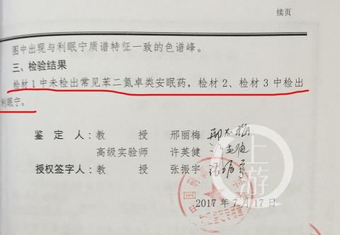 鑑定報告顯示劉熙尿液中含有利眠寧成分。