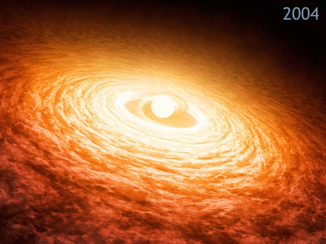 獵户FU型變星(FU Orionis)爆發的假想圖。