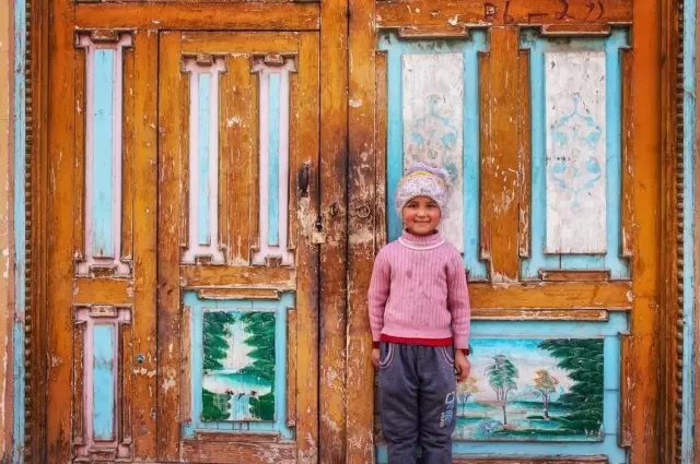在南疆的古城裏,透過五彩斑斕的門窗,