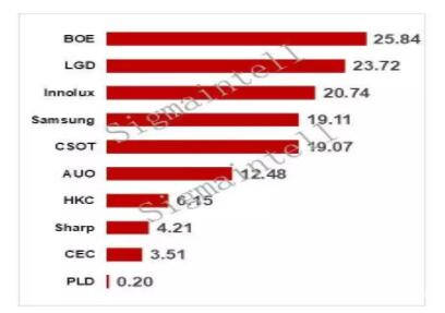 京東方2018年上半年液晶面板出貨量 數據來源:羣智諮詢