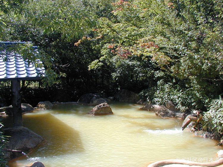 位於九重“夢”大吊橋附近,明治35年創辦的老字號旅館。温泉米、特別是“土類泉愛好者”無法抗拒的是這裏的渾水温泉。透明度是連10釐米處看不到的充分的渾濁,浸泡下去立馬看不見皮膚。以每分鐘500升的熱水量而自豪,照片中的女性專用露天“楓樹湯”造型十分寬敞。源泉是透明的,接觸到空氣之後便成了黃色。另外温泉含有碳酸成分,十分豐富的温泉成分讓人感到十分清爽。