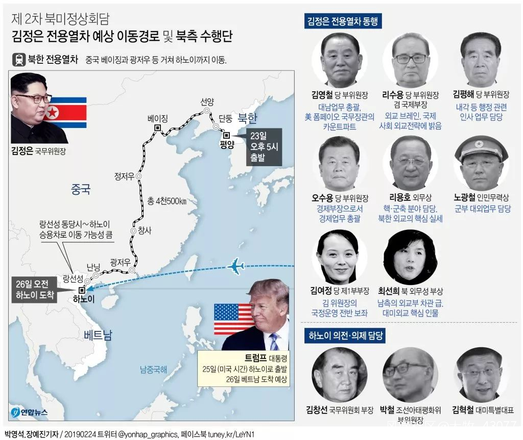 ▲隨行成員名單:朝鮮勞動黨中央政治局委員、黨中央副委員長金英哲、李洙墉、金平海、吳秀容,黨中央政治局委員、外務相李容浩,黨中央政治局候補委員、人民武力相努光鐵,黨中央政治局候補委員、黨中央第一副部長金與正,外務省副相崔善姬,及黨中央委員會和國務委員會成員。