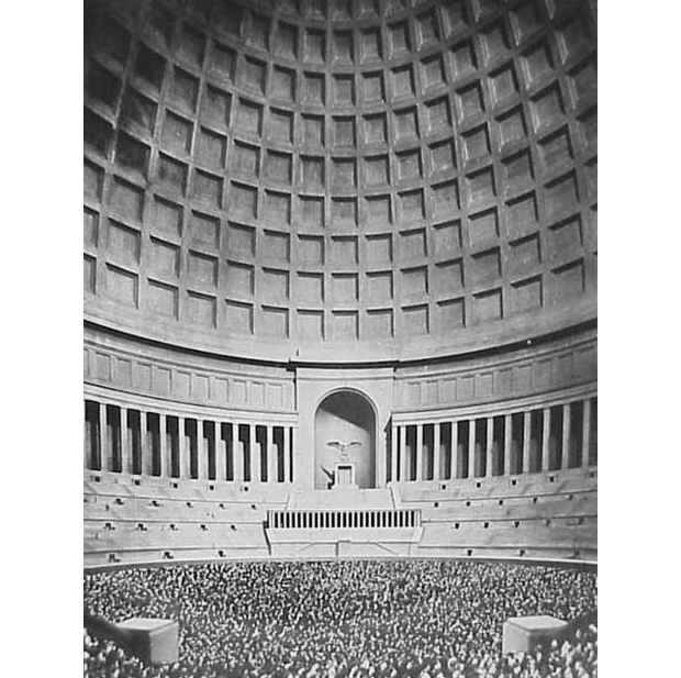 30年代的德國在納粹統治之下。納粹的意識形態熱衷於從日耳曼古典傳説中尋求精神支柱,熱衷於重建羅馬式的輝煌(還記得“千年帝國”嗎?),強調紀律和秩序,納粹的建築風格也反映了這一點。