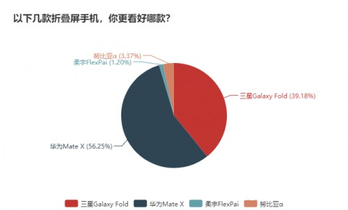 在已亮相的摺疊屏手機產品中,網友最看好的為華為Mate X,其次是三星Galaxy Fold。目前雖多個廠商或在社交平台、或在發佈會有提到起摺疊屏產品,但正式發佈的並不多,摺疊屏產品尚未迎來爆發階段,目前廠商更多是在造勢或佔位。