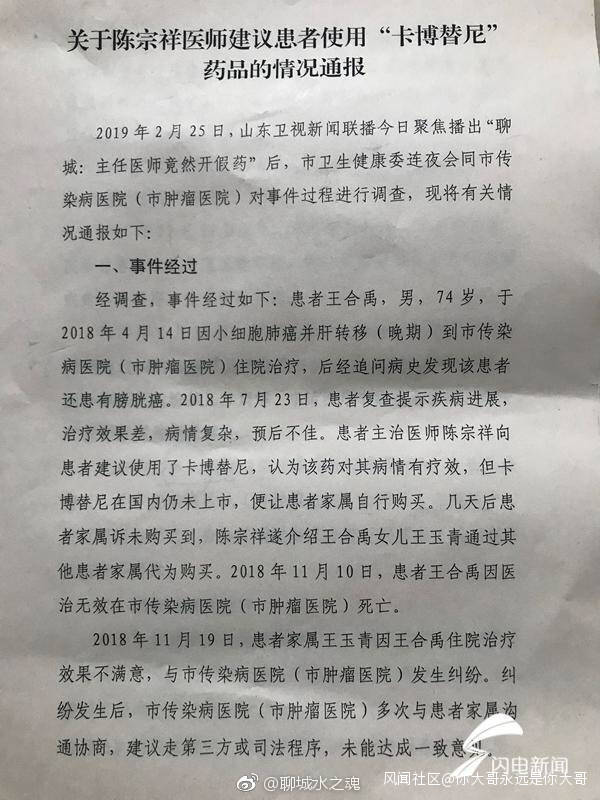 近日,山東聊城一醫生開具經食藥監部門鑑定屬於假藥的抗癌藥一事引發網友關注。