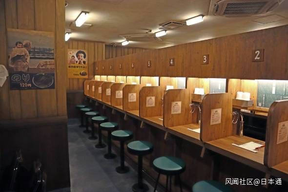記者選擇一蘭拉麪的特徵座位區——“集中調味的吧枱”入座。座位的牆上掛了簾子,還有呼叫店員的按鈕和冷水,座與座之間由牆板隔開,這些與以往的店鋪基本相同。