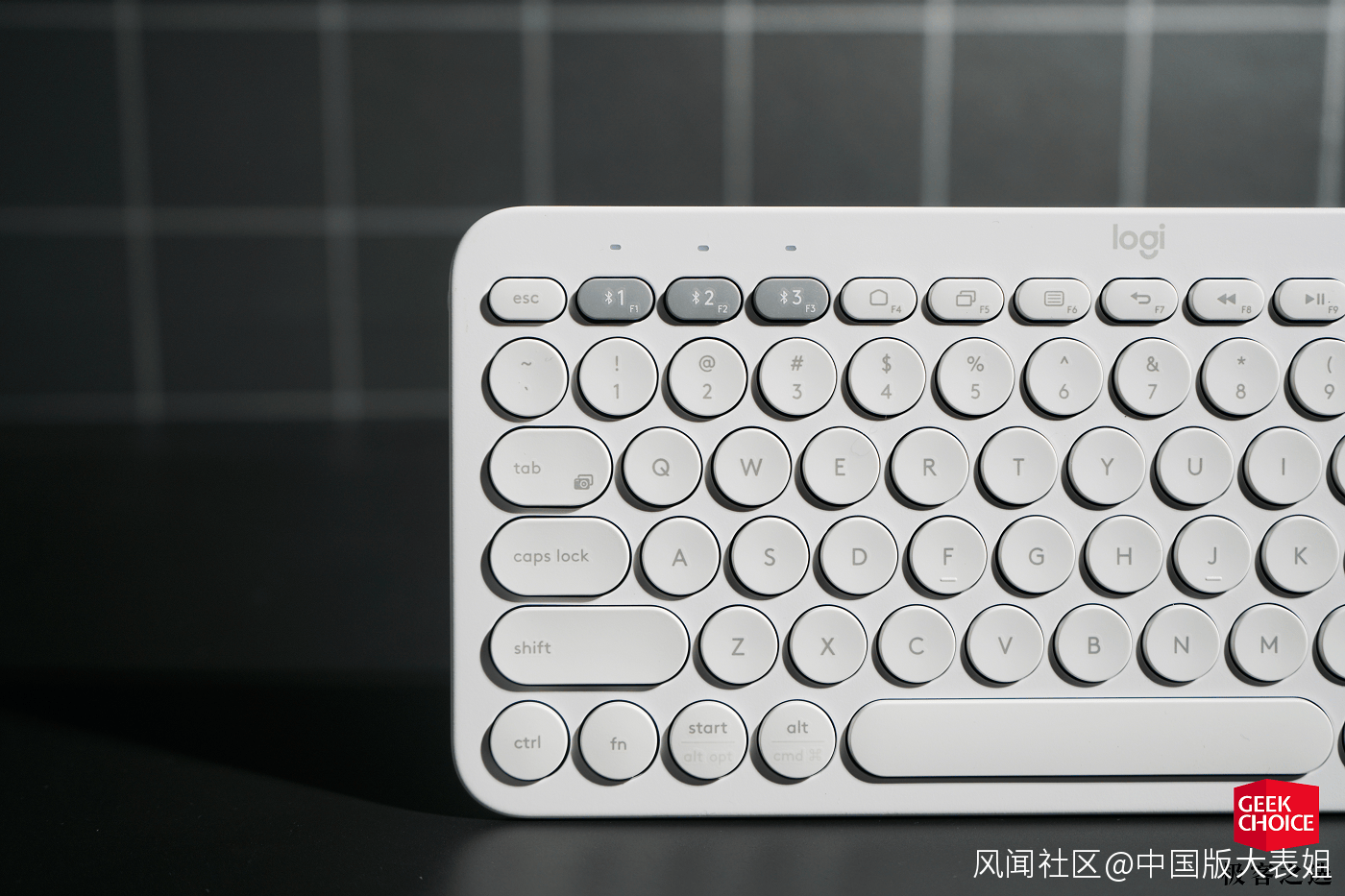 整體輕巧便攜的同時,圓形按鍵設計的 K380 依然保持了不錯的手感,儘管比不過機械鍵盤的高鍵程手感,但相比筆記本電腦的敲擊感更好,也適合日常和辦公使用。