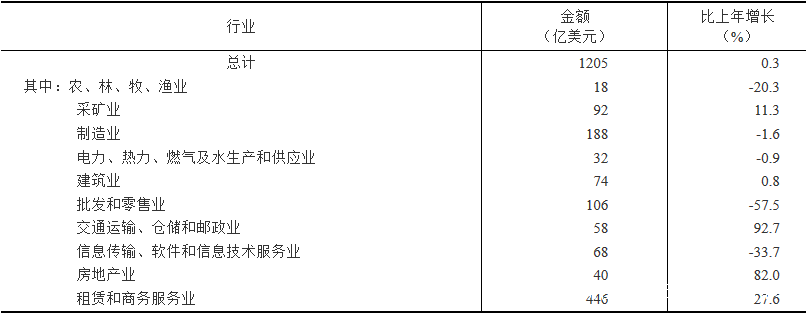 全年對外非金融類直接投資額7974億元,比上年下降1.6%,折1205億美元,增長0.3%。其中,對“一帶一路”沿線國家非金融類直接投資額156億美元,增長8.9%。
