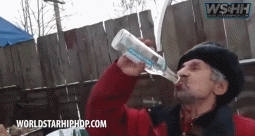▲俄羅斯六十歲大爺表演硬核伏特加吹瓶