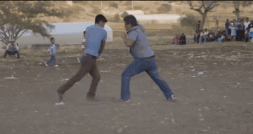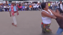 他們穿着色彩鮮豔的民族服裝,各自選定一位對手幹架,下手還不分輕重。