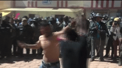 站在一旁全副武裝的軍警倒像是死人,任由他們打得難解難分。