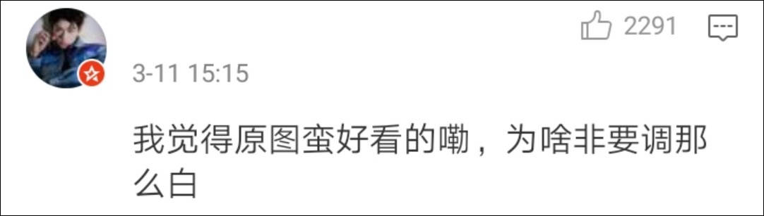 但是有粉絲卻覺得膚色不夠白皙,給這組照片調白了幾個色號。