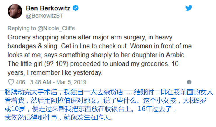 成千上萬的網友在這條帖子下留言,分享他們與陌生人之間的温馨故事,讓大家看到了人性的美好。這些讓網友們念念不忘的經歷,其實大多數都是很小的事情。比如,一名小女孩在媽媽的提醒下幫手臂受傷的陌生男子拿東西:
