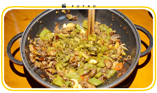 榨辣椒簡直百搭,炒雞蛋、炒肥腸皆可,其中的榨辣椒糊魚更是一道王牌菜。有吃鯽魚缽子時,把榨辣椒調成糊糊就着湯汁燉到粘稠的。也有像功夫菜館這樣,直接加入去刺的魚片一起熬的。舀一勺澆在米飯上,無需旁的菜,就能消滅這一碗。