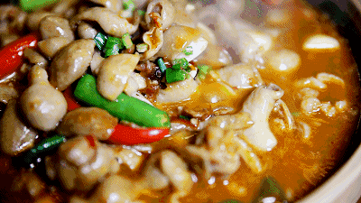 置身於一片肥腸香氣中,等待的時間變得漫長而煎熬。不知跑了幾次廚房催促,嚥了多少回口水,一鍋油汪汪的肥腸終於端來了面前。