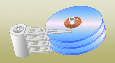 工作時,主軸高速運轉帶動盤片,上方的磁頭通過感應盤片上磁場變化讀取數據,通過改變磁場寫入數據。