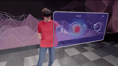 它可以使你與設備產生的數字內容交互,並與周圍真實環境中的全息影像互動。就像這樣。