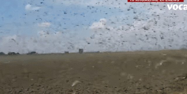 漫天飛舞的蝗蟲從俄羅斯南部經過,一時間日月無光,天地昏暗,猶如世界末日。據報道,此次蝗災造成俄羅斯境內10%以上的農田被毀,受災面積高達7萬公頃。