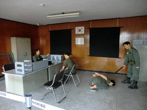 當年韓國戒嚴軍隊駐留的營地位於光州城外,同時也充作臨時關押被逮捕的518造反者的牢房。現在這裏恢復原狀,作為518紀念公園免費對外開放,可以看到士兵的宿舍、扇形的牢房、以及臨時改造為拷問室的廚房等。公園東南角入口附近是陳列館,裏面介紹了光州事件的全過程,雖然比不上518紀念公墓裏的陳列館那麼時髦大氣,不過你在這裏可以拿到免費的中文視頻光盤。