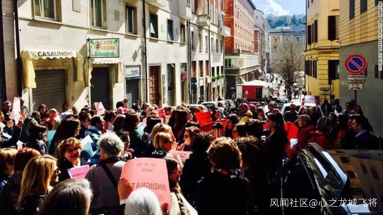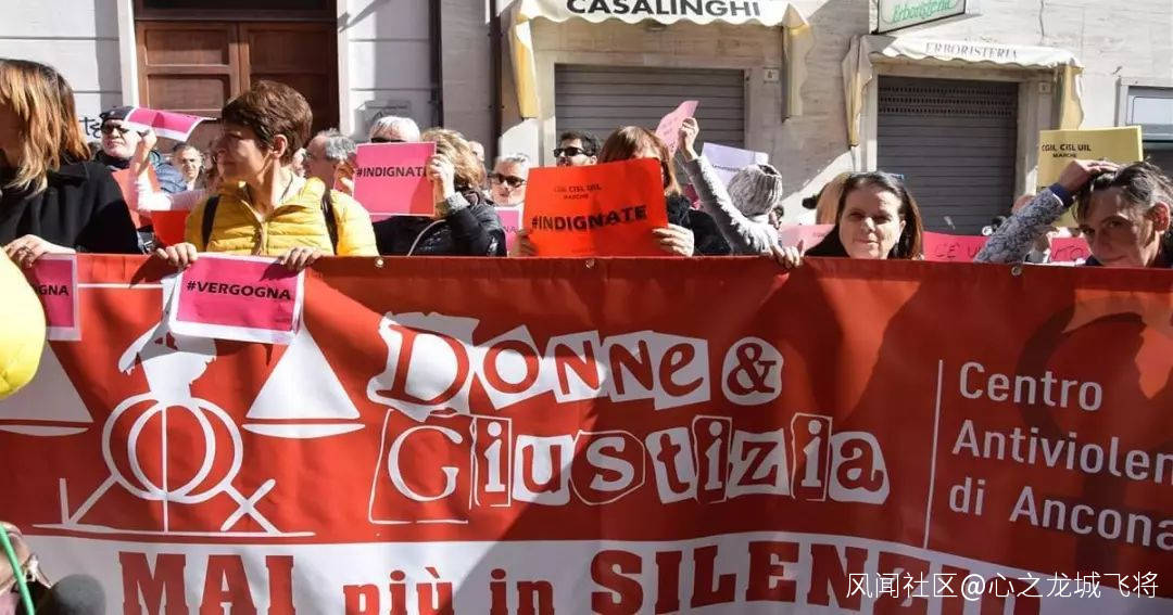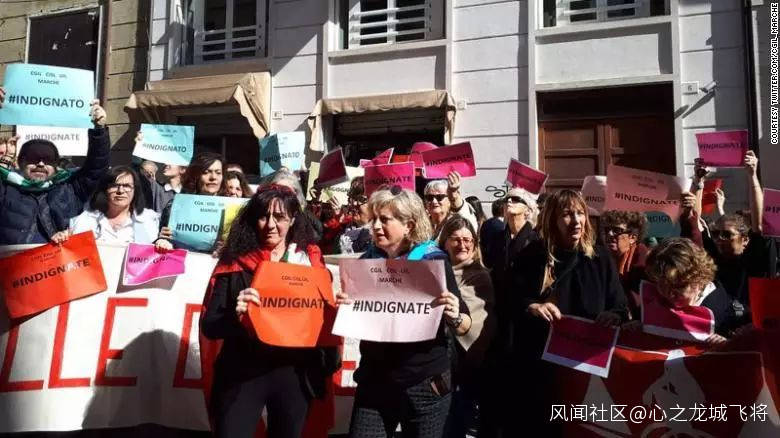 許多意大利女性出離憤怒了。本週一,近200名抗議者聚集在安科納市法院前,他們舉着寫有“憤怒”字樣的牌子,高呼“無恥!”