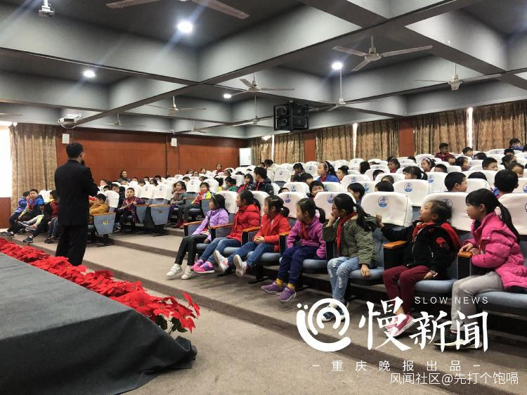 “昨天晚上,蜀黍在陽台散步的時候,天上掉下來一封信。信裏讓我到咱們南濱路小學來,然後蜀黍就來了……”3月14日下午,合川區南濱路小學的禮堂上起了一堂奇怪的課程。範汗瀟站在講台上,給小同學們講起了“如何寫信”的話題。
