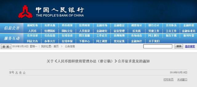 據中國人民銀行網站消息,為規範人民幣圖樣使用行為,維護人民幣信譽和流通秩序,中國人民銀行發佈《人民幣圖樣使用管理辦法》修訂稿,並向社會公開徵求意見。