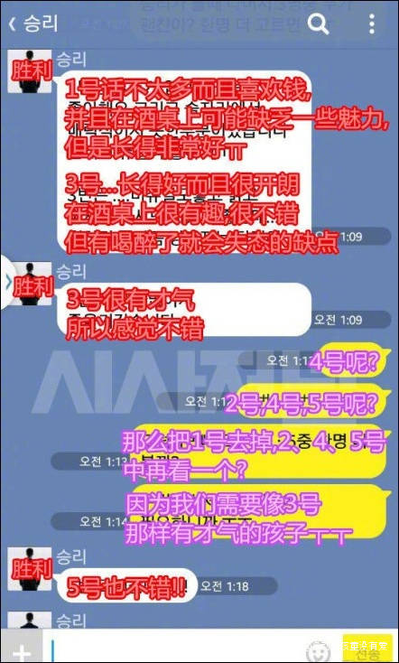 在聊天記錄中,勝利與投資客將女性進行編號,