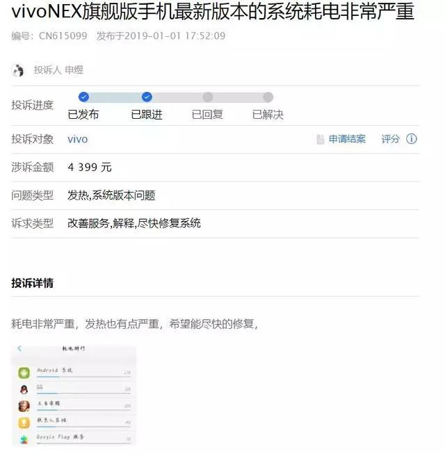 在系統優化方面,vivo手機也成為了吐槽的對象。近年來,雖然vivo非常注重系統優化等方面的問題,但令人無奈的是,或許是因為底藴不足,依然出現了不少問題。有消費者吐槽,vivo的NEX旗艦版手機在更新最新版本後,系統耗電非常嚴重。