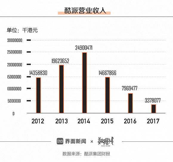 2017年的財報顯示,酷派的營業收入只為33億港元,比在2014年相差了接近10倍。