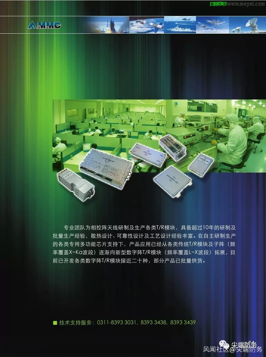 可以看到其產品已經已經廣泛採用氮化鎵技術,工作波段從L波段到X波段種類齊全,單個組件功率從20瓦、30瓦、60瓦、80瓦、100瓦、120瓦應有盡有。收發組件的工作波段也可以覆蓋L波段到X波段,並且也實現了數字化。而實現收發組件數字化是實現數字列陣雷達的前提條件。