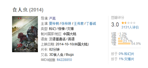 當時《食人蟲》也是號稱投資上千萬,特效如何突出。但是這次嚴嘉採訪説“幾百萬的投資拿了三千萬票房。”這部爛片還是賺到了錢。