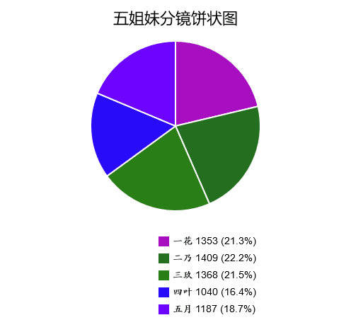 而據@qscdefb統計,五姐妹各自累計對白+獨白+心理活動數量,有細微的差異。