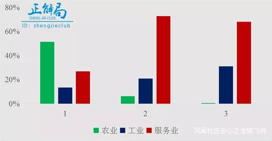 在我們的認知裏,一二三產業(簡單對應農業、工業、服務業),越發達所佔比重相應越來越高。我們能確定國家1是尼泊爾,但是國家2、3呢?