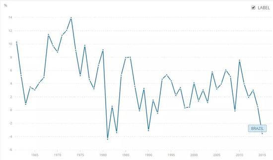 巴西GDP增速 前面説過,1979年,巴西人均GDP為1901美元,韓國是1773美元,巴西在韓國之上。