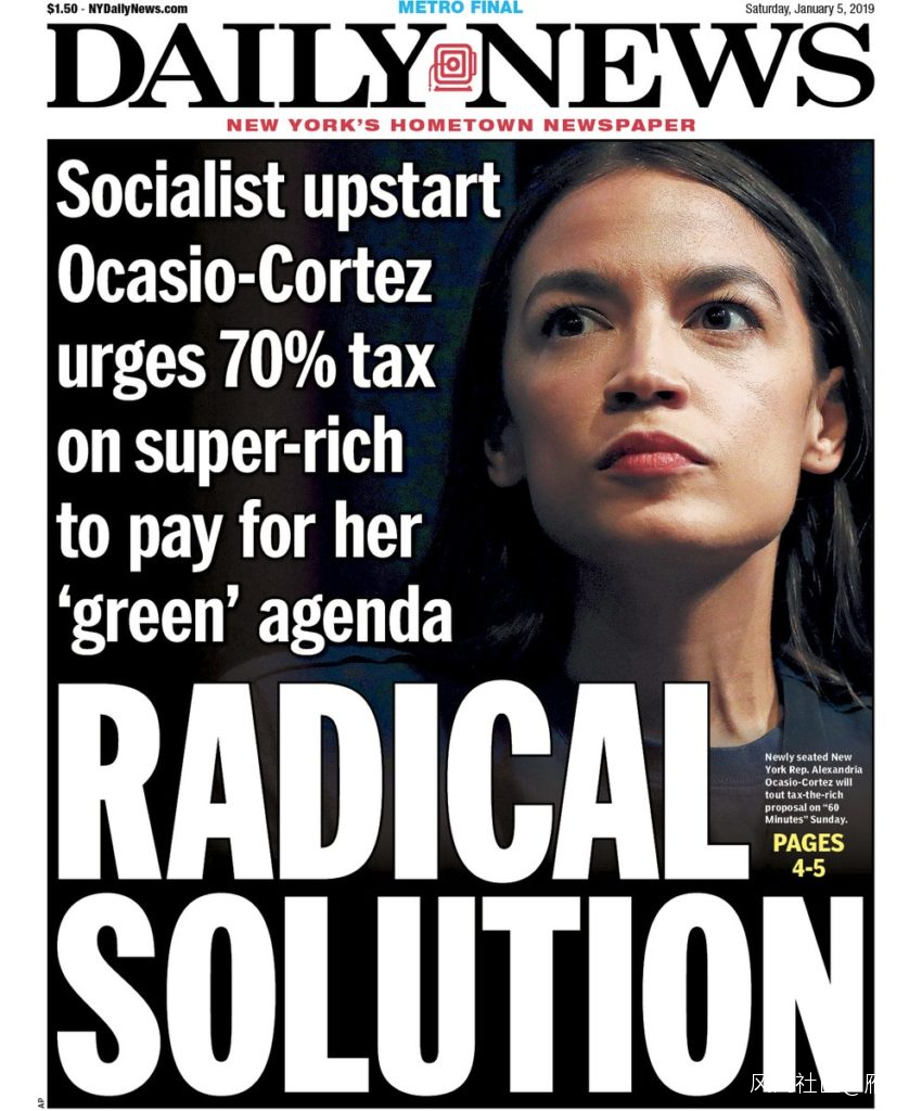 這些話或許是「白左」的標誌,但AOC的左傾又與一般白左不太一樣,因為她旗幟鮮明地瞄準富人階級開槍,在宣示上任後的第一個提案,就是對鉅富課徵60%-70%的重税,以支援她另一項驚人的「綠色新政」(Green New Deal)計劃。這項提案並得到諾貝爾經濟學獎得主克魯曼的聲援。