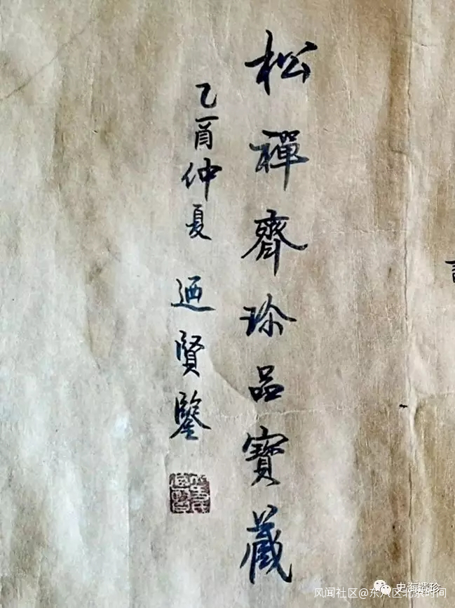 8、《蘭亭序》書法長卷尾跋第六位:迺賢 題跋文:行書字體:“松禪齋珍品寶藏——乙酉仲夏迺賢鑑”,鈐印:朱文方章,時年為公元1339年