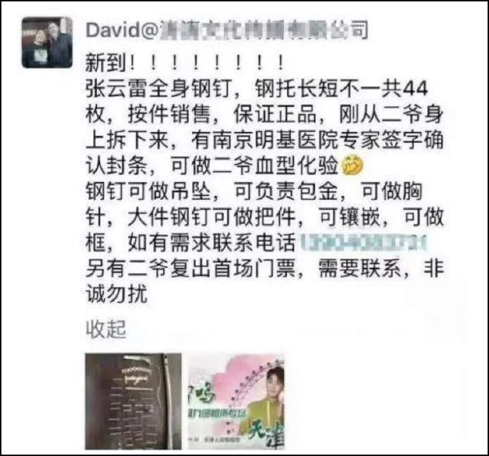 前腳剛出院,後腳就有人朋友圈售賣張雲雷身上拆下來的鋼釘?_風聞