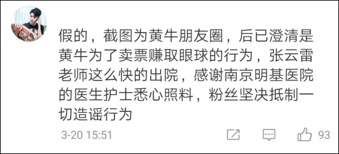 3月20日上午,張雲雷在個人社交賬號上發文宣佈出院,並隨時可以投入到工作中。