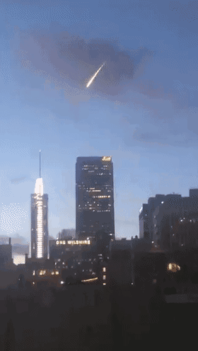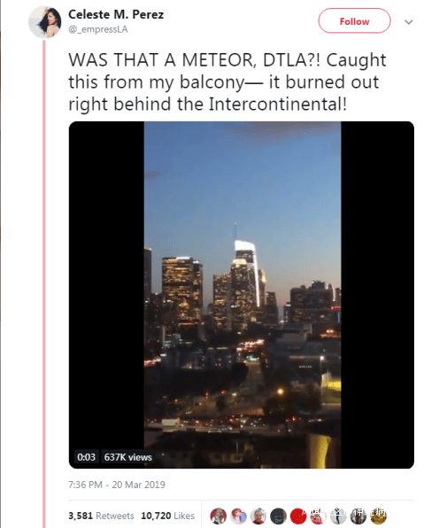 “那是一顆隕石掉到洛杉磯市中心了嗎?我從陽台上拍到——它就掉落在洲際酒店的後面!”↓