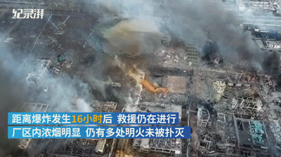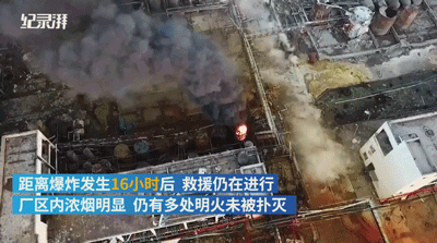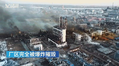 3月22日上午6時許,江蘇省鹽城市天嘉宜化工廠爆炸16小時後現場航拍顯示,廠區被爆炸完全摧毀,可見明火,濃煙仍未散盡。