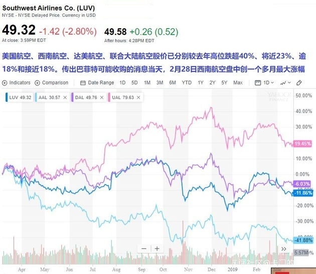 巧的是,不久之後,2月28日,Twitter上傳出巴菲特商議收購西南航空的消息,當天西南航空股價盤中大漲5.8%,創今年1月24日以來最大日漲幅。