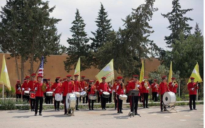 在一個電視轉播的儀式上,其總指揮呼籲宣誓要重新奪回整個國家的敍利亞政府承認在敍利亞東北部由自衞隊控制地區的自治政府。