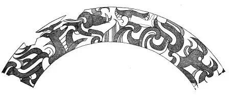 圖案中,飛鹿肢體騰空,背上生翼,長角滫目,神態端莊安詳;豬龍為豬首蛇身,尖吻上翹,巨牙上指,眼睛細長,周身有鱗;神鳥奮翼沖天,巨頭圓眼,頂上生冠,長嘴似鈎。