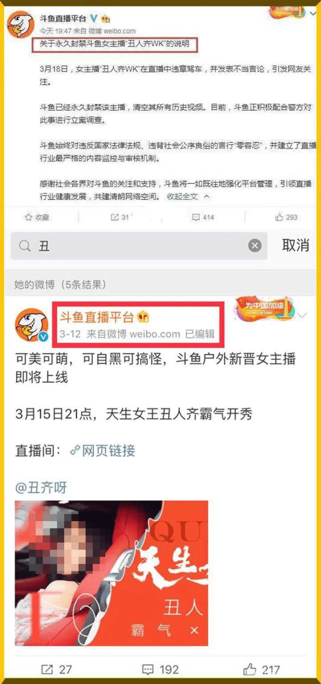後來雖然直播平台的官方微博,更新稱將其永久封禁醜人齊,